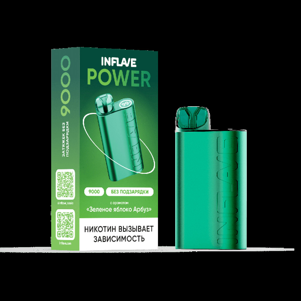Электронная сигарета INFLAVE POWER 9000 затяжек Зеленое Яблоко Арбуз - купить в Ульяновске